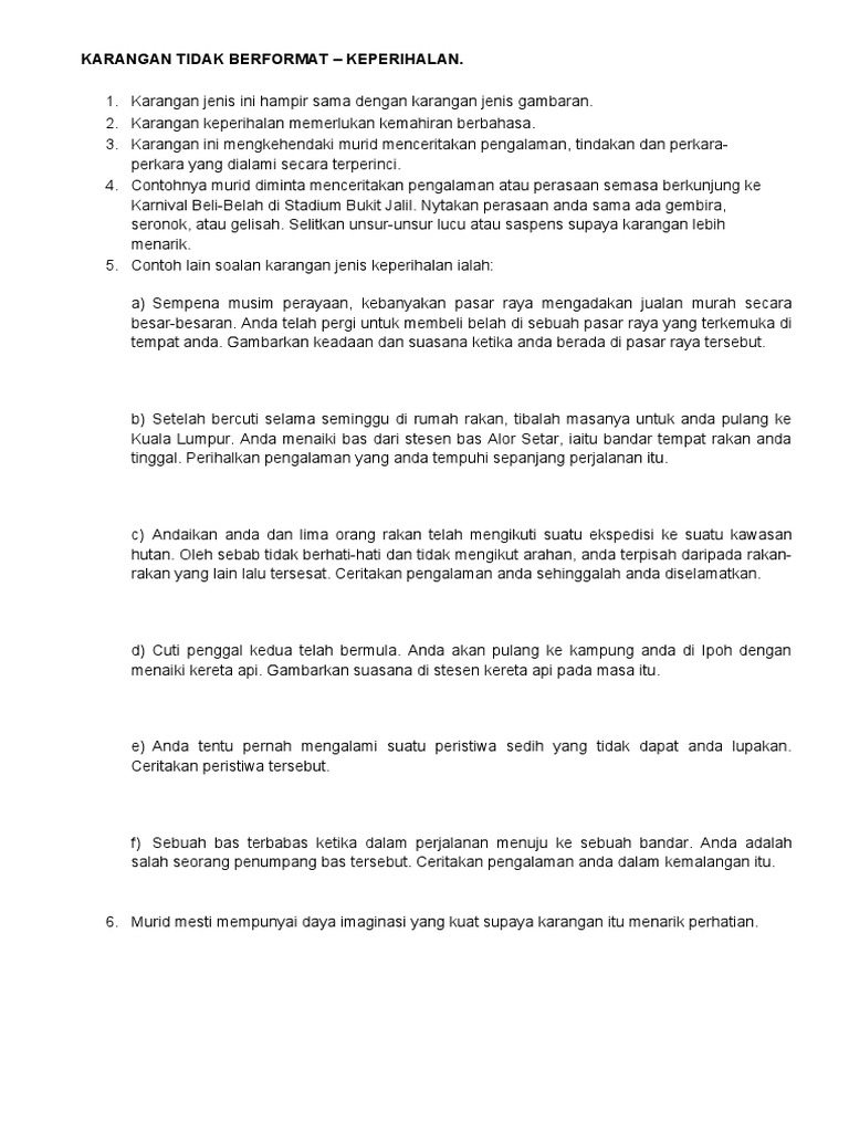 Setiap student memang WAJIB buat karangan perihal diri perancangan pengajian dan kerja untuk mohon loan MARA. Hari Raya Aidilfitri bakal menjelangAnda berada di stesen bas untuk pulang ke kampungPerihalkan suasana di stesen bas tersebut. Kami tercampak ke dalam air yang bergelora dan digulung ombak hingga tenggelam seketika.
